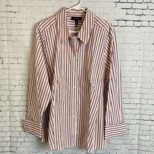 “Lane Bryant Striped Button Down Essential Shirt Cuffed No Gap Gray , Pink and white striped.