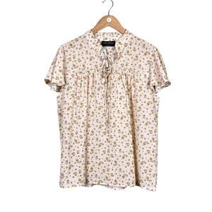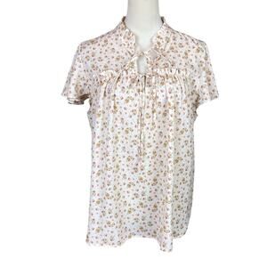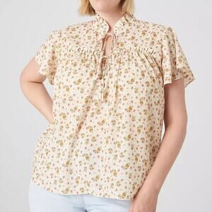 Lane Bryant NWT Cream & Coral Floral Print Double Tie Cottagecore Blouse