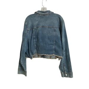 Lane Bryant Distressed denim jacket with raw hem, paint splatters, New With Tags.