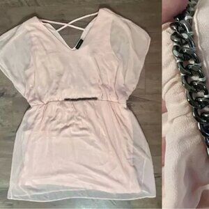 Lane Bryant NWT Plus Size Light Pink Babydoll Kimono Vneck Chain Waist Tunic Top - Elegant light pink dress with a V-neck and short sleeves. Features a stylish back design. Beautiful and flowy, great for a wedding, shower, special event, church service or summer party. Chiffon.