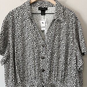 Brand new with tags Lane Bryant Short Sleeve Collared Safari Romper Shorts in ivory, tan, and black. Women’s plus size 28. Button closure. Adjustable tie at waist. Pockets. Retailed for $79.95. NWT- there is writing on interior tag.
