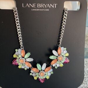 Lane Bryant NWT flower design crystals diverse colors chunky necklace