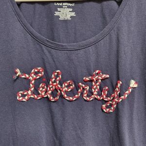 Embrace casual style with the Lane Bryant 'Liberty' top. This navy blue top features a playful 'Liberty' design, perfect for everyday wear.