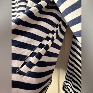 Lane Bryant Navy & White Striped Asymmetrical Zip Blazer