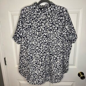 Lane Bryant Navy and White Floral Blouse Buttons 1/2 way Down Size 20 GUC