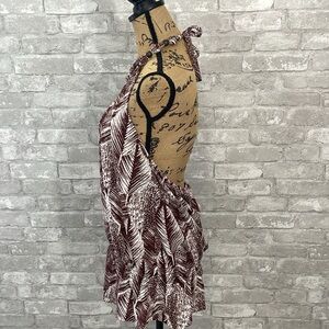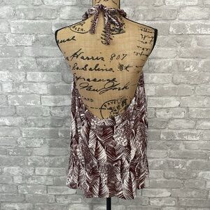 Lane Bryant Beaded Halter top Smocked waist Open back Removable beaded neckline Back tie closure