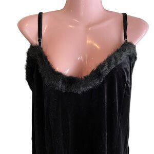 Lane Bryant Nightgown Womens 22 24 Black Velvet Faux Fur Trim Slip Chemise