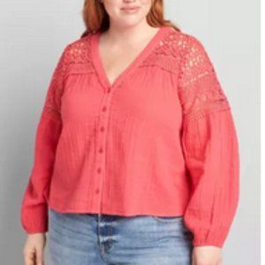 Lane Bryant No Peek Crochet Button-Down Crop Top