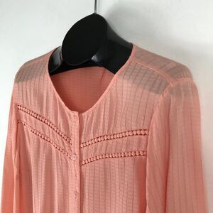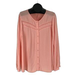 Lane Bryant No-Peek Crew Neck Button Front Blouse Women's Plus Size 18 Coral