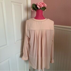 Lane Bryant Nude/Blush V-neck Long Sleeved Blouse, size 14/16, black accent