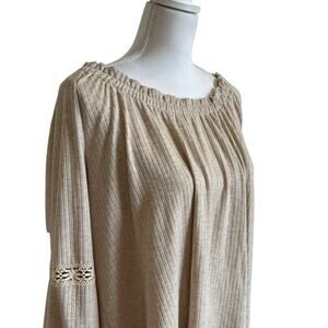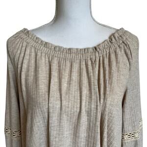 Lane Bryant Off Shoulder Top Women's Size 14/16 Tan Peasant Lace Accent Boho