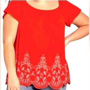 Lane Bryant Off The Shoulder Knit Top Swing Red White Embroidery Hem EUC 18/20