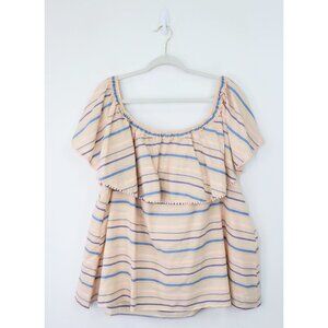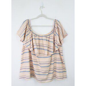 Lane Bryant Off The Shoulder Pom Top Stripe Flounce Overlay Blouse Beige 26 / 28