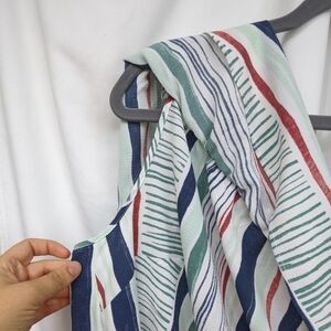 This top is in gently used condition. It is a crepe textured material. It is sleeveless with a flutter overlay. It can be worn off shoulder. The neck is stretchy. Please see photos for details.