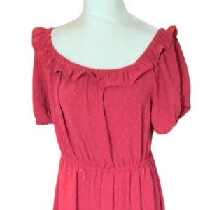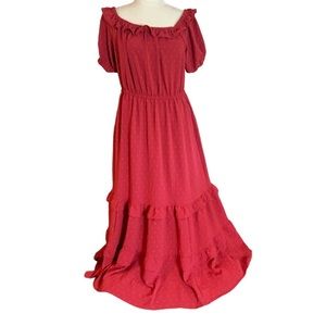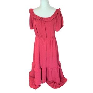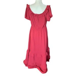 Lane Bryant Off the Shoulders Ruffle tiered peasant brick/ pink maxi dress.