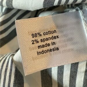 Chic and flattering off-the-shoulder wrap-style top in a classic vertical black and white stripe. Made from a soft cotton-spandex blend for breathable comfort with a bit of stretch. Features short flutter sleeves, a V-neckline, and a self-tie waist that creates a flattering silhouette. Also a sticky strip to keep in place