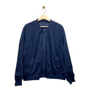 Lane Bryant On The Go Laser Cut Bomber Jacket Navy Blue Size 20 Spring Coastal