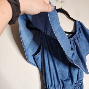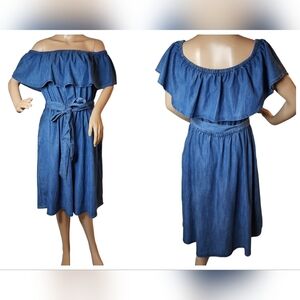 Lane Bryant On/Off Shoulder Blue Chambray Belted Dress Side Pockets Sz 14/16 1X