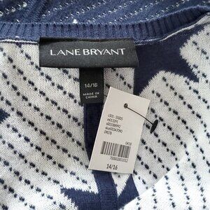 Lane Bryant Cardigan Sweater 14/16 Navy Blue White Stars Stripes Short Sleeve