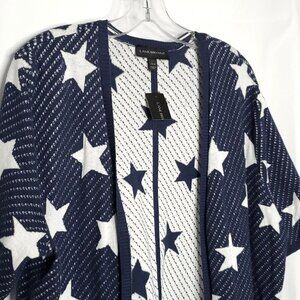 Lane Bryant Open Cardigan 14/16 Navy Blue White Stars Stripes Short Sleeve