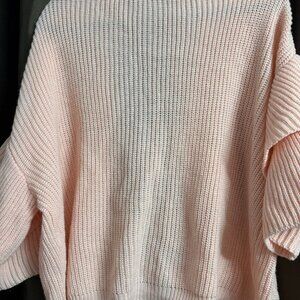 This Lane Bryant cardigan is perfect for layering over tanks, tees, or blouses. The light pink shade adds a soft, feminine touch while the oversized fit keeps it comfortable and versatile for casual or dressy wear.