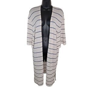 Excellent pre-owned condition. No flaws to note. Women's plus size Lane Bryant Open Weave Knit Kimono Stripe Cardigan 14/16.