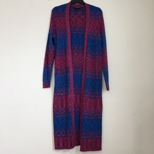 Lane Bryant Boho Open front blue pink block long sleeve Knit slouchy sweater cardigan