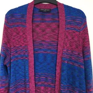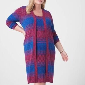 Lane Bryant Open front blue pink block long sleeve Knit slouchy sweater cardigan