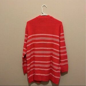 Add this cozy cardigan to your look for a pop of print thanks to the striped sweater knit.