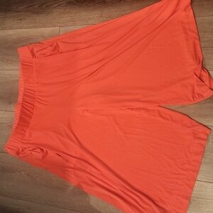 Experience ultimate comfort with these Lane Bryant orange Bermuda pants, crafted from a soft, lightweight fabric that drapes beautifully. The relaxed fit and elastic waistband ensure ease of movement, making them perfect for casual outings or lounging at home.Size 18/20 wide leg inseam 18 inches mid rise 13 inches