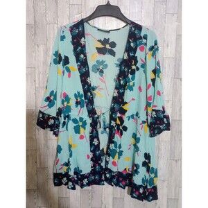 Lane Bryant Overpiece Cover up Blue Floral Tie Waist Size 18/20