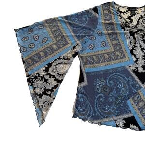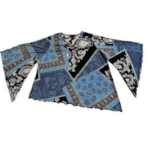 Lane Bryant Paisley Handkerchief Scarf V-neck Top Size 26 28 Bell Kimono Sleeves