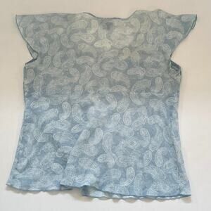 Lane Bryant Pale Blue Paisley Boho Short Ruffle Sleeve Top/Blouse with Ruching Detail on Front in a size 18/20
