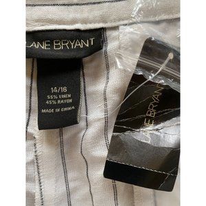 Lane Bryant Pants Trousers 14/16 NWT White Black Pinstripe Linen Blend Flare Hem