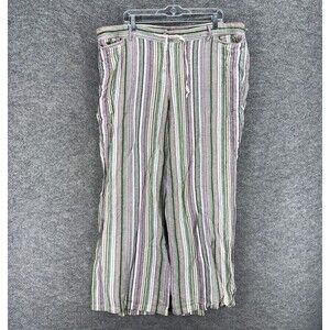 Lane Bryant Pants Women 18/20 Plus Gray Striped Linen Drawstring High Rise Chino
