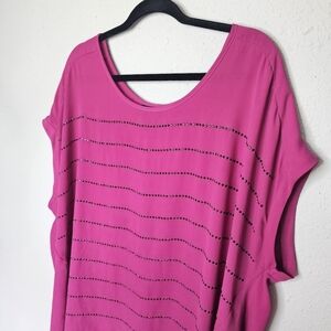Lane Bryant Pink Black Hi Lo Tunic Blouse Shiny Plus Size 18/20