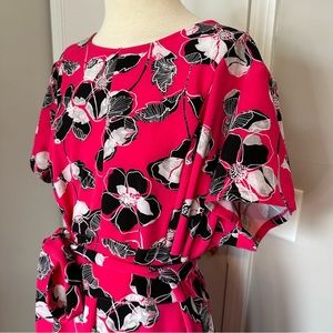 Lane Bryant Pink Black Poppy Floral Hi Low Summer Dress Size 24