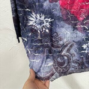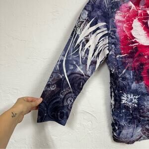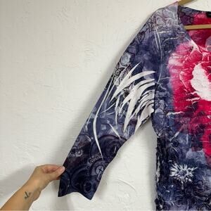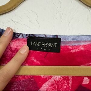 Lane Bryant Pink Blue Rose Print Tie Dye Ruffled Blouse Womens 22/24 Y2K Floral