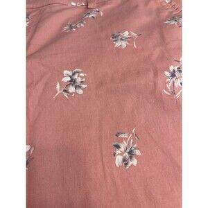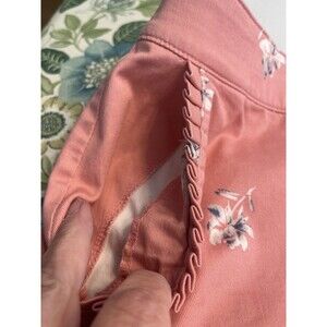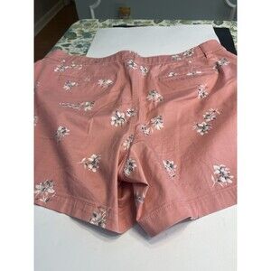 These Lane Bryant Pink Floral Shorts in size 18 feature a stylish ruffled pocket trim and a comfortable flat front design. Made from a blend of spandex and cotton in a twill fabric, these mid-rise shorts are perfect for various occasions such as travel, parties, or casual outings. The pink floral pattern adds a touch of classic and modern style to these plus-size women's shorts, which have a 5-inch inseam and a waist size of 40 inches. With a hook and eye closure and slash pockets, these shorts offer both style and functionality for the fashion-forward woman.