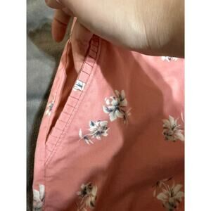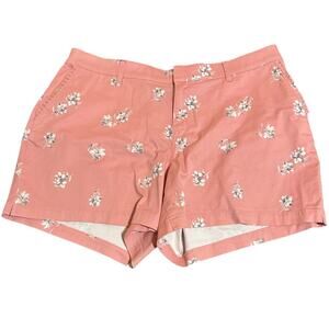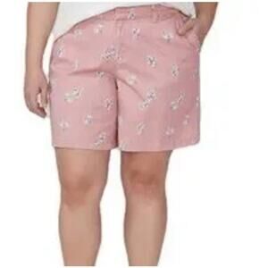 Lane Bryant Pink Floral Shorts Size 18 Ruffle Pockets 5” Causal Spring Summer Elastic Waist Band Preppy Bacation Chino