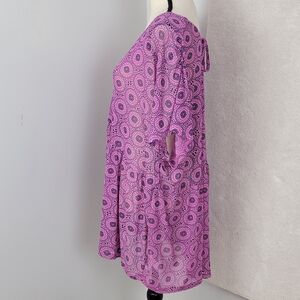 Lane Bryant Pink Geo Print Babydoll Mesh Cap Sleeve V-Neck Top