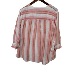 Lane Bryant Pink Orange Striped Linen Blend Button Down Shirt Women's 14/16
