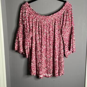Lane Bryant Pink Polka Dot Off Shoulder Flowy Top Size 18/20