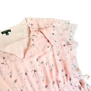 Lane Bryant Pink Ruffled Floral V-Neck Romantic Cottagecore Dainty Blouse 24 3X
