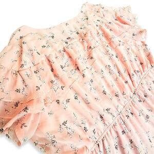 Lane Bryant Pink Ruffled Romantic Chiffon Floral Print V-Neck Cinch Peplum Blouse Cottagecore Plus Size 24 3X