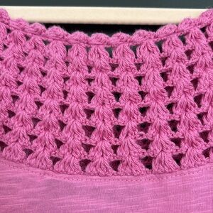 Lane Bryant Pink Sleeveless Top w/Crochet Neckline. 100% Cotton. Size 14/16.