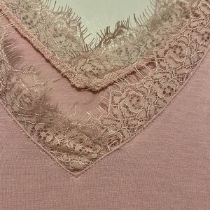Introducing Lane Bryant's Pink Soft V Neck with Eyelash Lace Trim - Sophistication meets comfort in this must-have top!