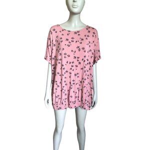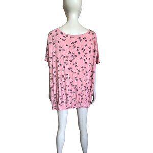 Lane Bryant Pink and Black Flower Short Sleeve Top