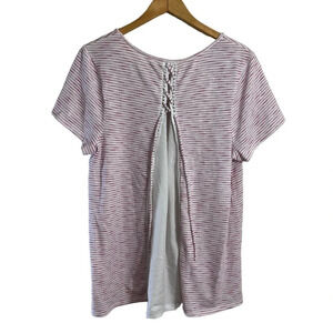 Lane Bryant Pink and White Striped Blouse Size 18 20 Knit Lace Up Backside Top