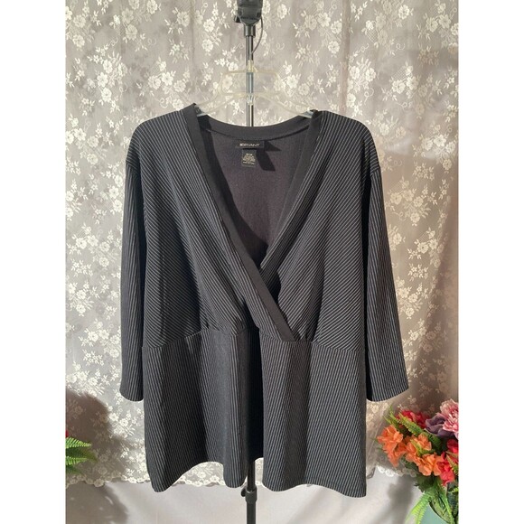 Lane Bryant Pinstripe Blouse Black & Blue Corpcore Business Casual Size 26/28